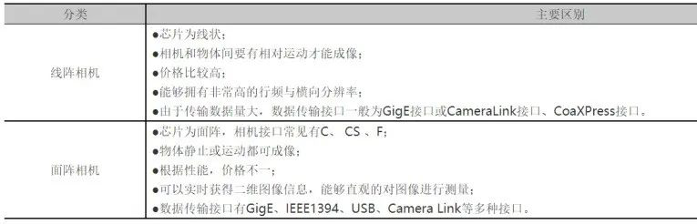 按照传感器的结构特性:可以分为线阵相机、面阵相机;