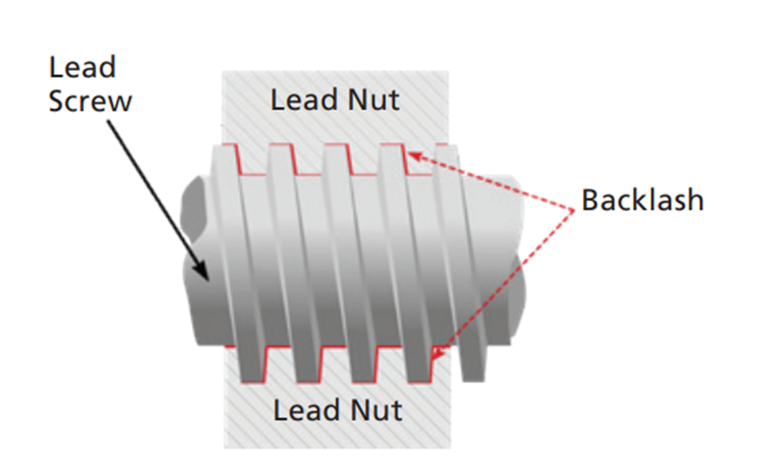 图4:在由丝杠驱动的系统中,丝杠螺纹和螺母对应螺纹之间的微小间隙,会导致机械松弛。