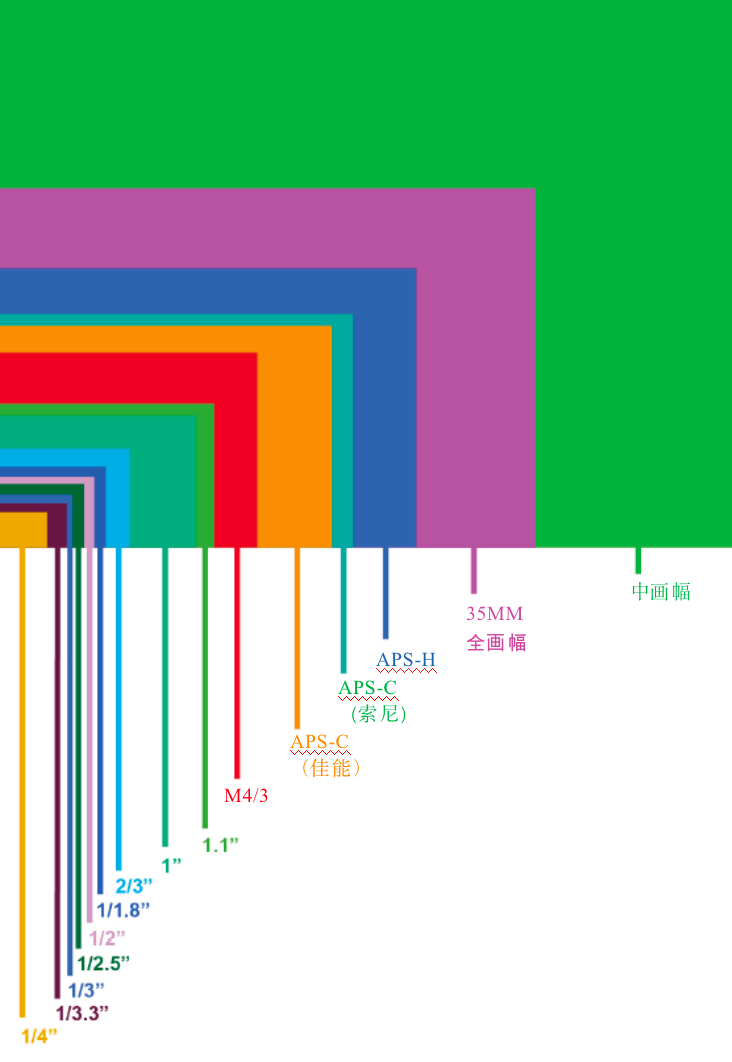 相机的传感器尺寸决定了相机的裁切系数。通过选择特定的焦距并更换相机以使用不同尺寸的传感器,随着传感器尺寸减小,图像将会越来越大。图中可以看到这一点,其中全画幅35mm传感器代表全尺寸图像,传感器尺寸一直减小至?”传感器,该图像会继续放大。减小传感器尺寸后,图像会应用裁切系数,这类似于镜头如何增加焦距进行放大。因此,较小的传感器将需要更宽的FoV来捕捉完整的目标,或者需要相机保持一定的物理距离,直到画幅内出现完整的目标。