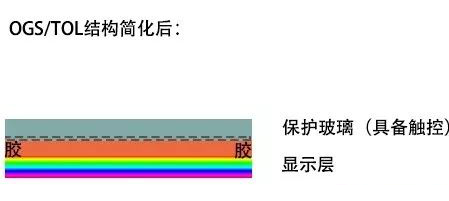 OGS和TOL将保护层和触控层“合并”在一起之后,但是在制造工艺流程上还是有所区别, OGS先安装触控层再切割成手机屏幕大小,