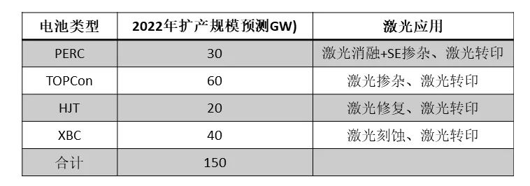 激光在N型电池中的应用包括激光掺杂、激光修复、激光刻蚀、激光转印等,价值量较PERC时代有望成倍增长,因此N型电池放量也将带来光伏激光设备市场空间快速扩容。