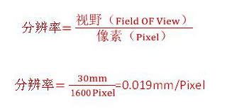 比如我要看的产品大小是30mm*10MM,使用200万像素(1600pixel*1200pixel)的相机。因为产品是长条形,为了把产品都放入到视野内,我们计算分辨率的时候要考虑长边对应,此时分辨率为