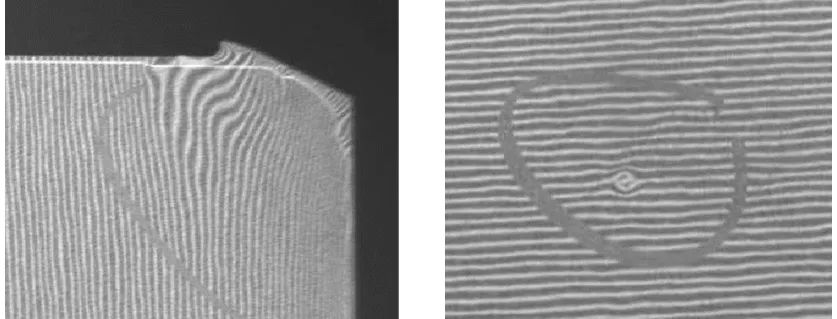 4)圆弧面缺陷,受弧面的影响导致视野不能做大,如用明视野法,则成像光斑非常小;用暗视野成像则对于缺陷方向有局限性;