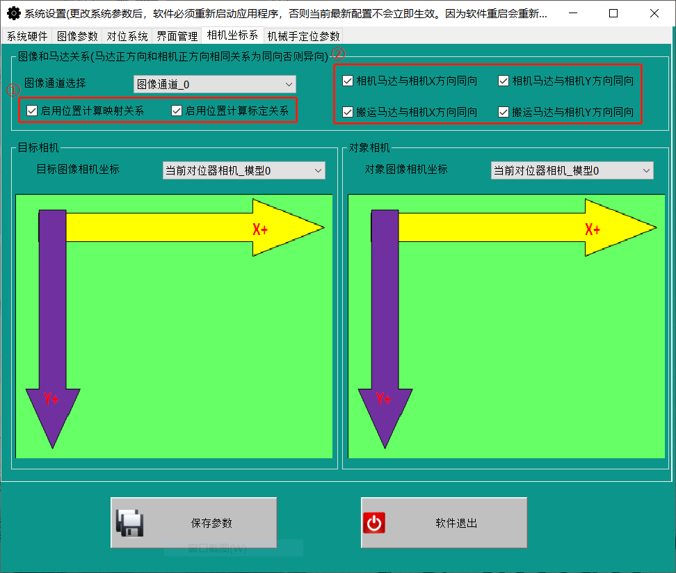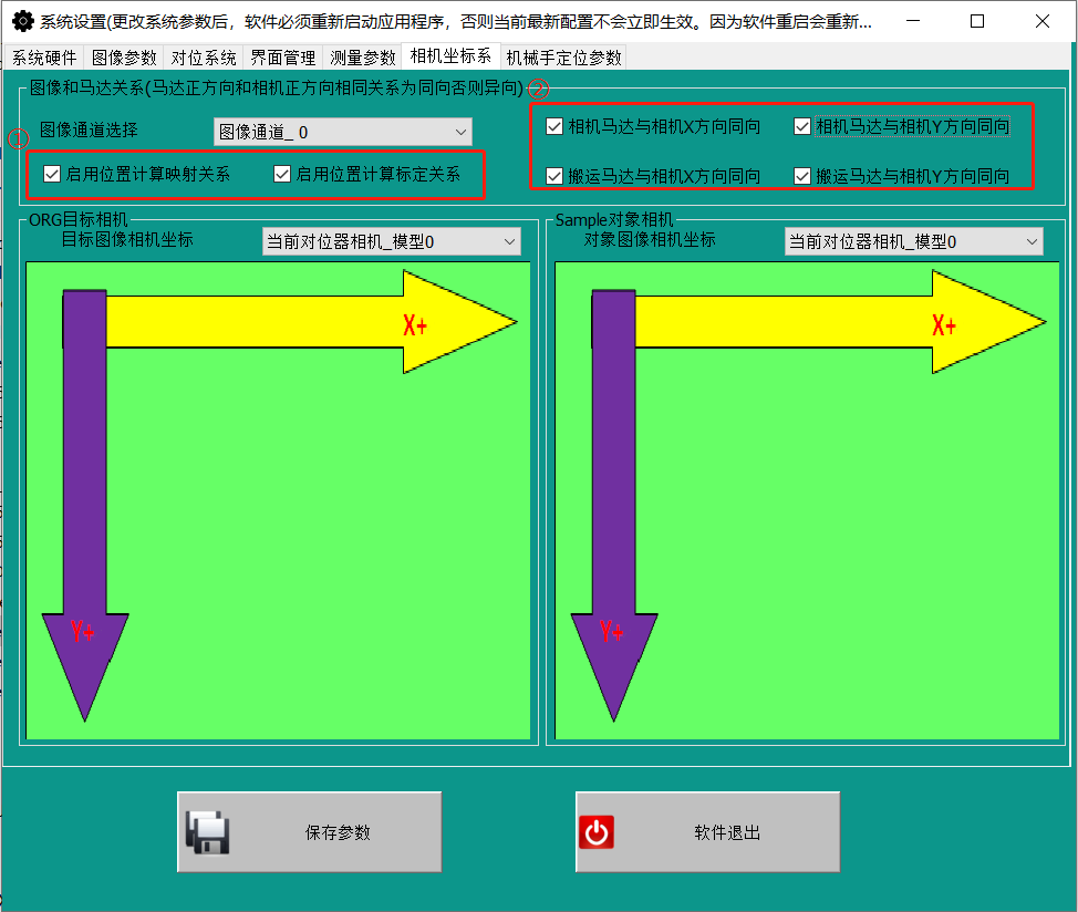 相机安装方向和搬运马达方向的关心设置(每个通道都需要设置)
