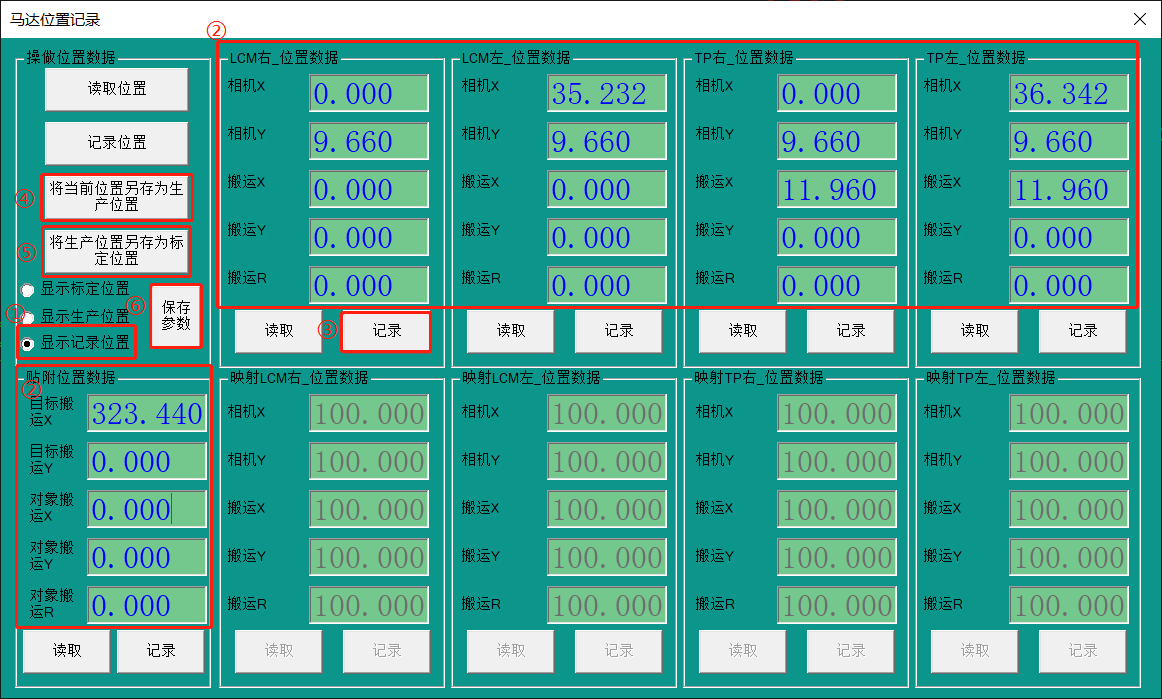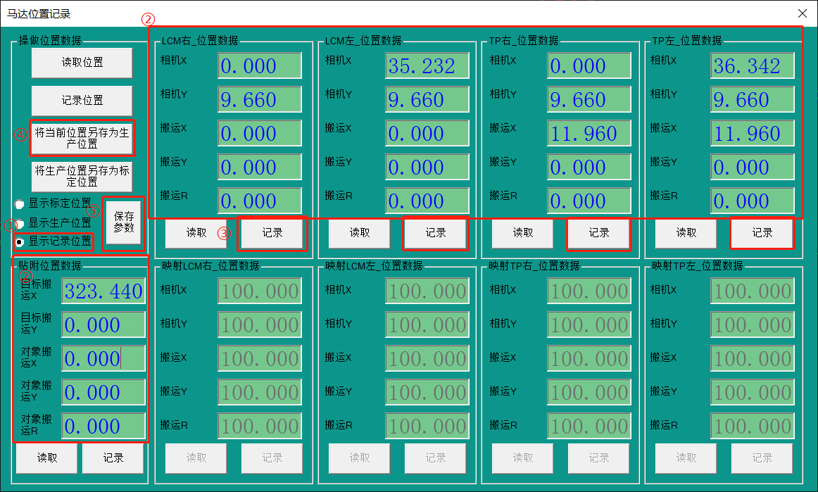 ②修改各轴位置,没有电机的位置填0。(包含相机位置,sample、ORG拍照位的搬运位置,贴合位置的Sample和ORG的搬运位置);