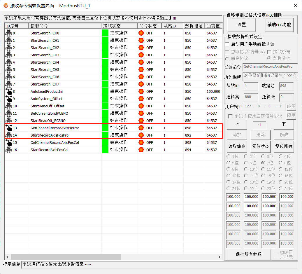 接收协议一共有2个指令用于接收PLC电机位置坐标。