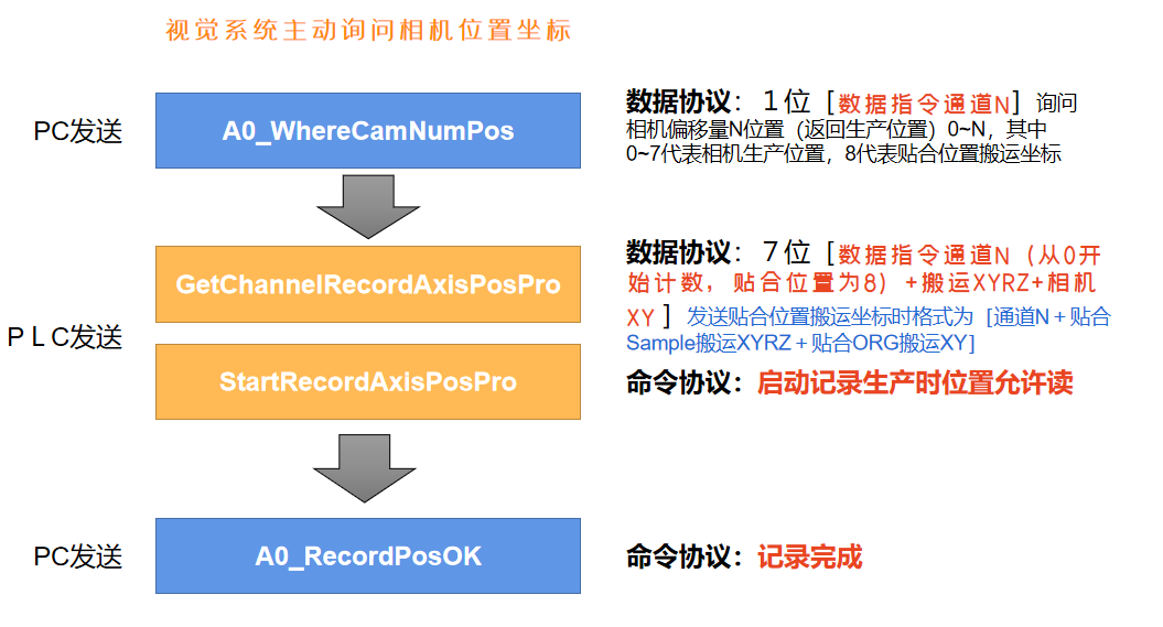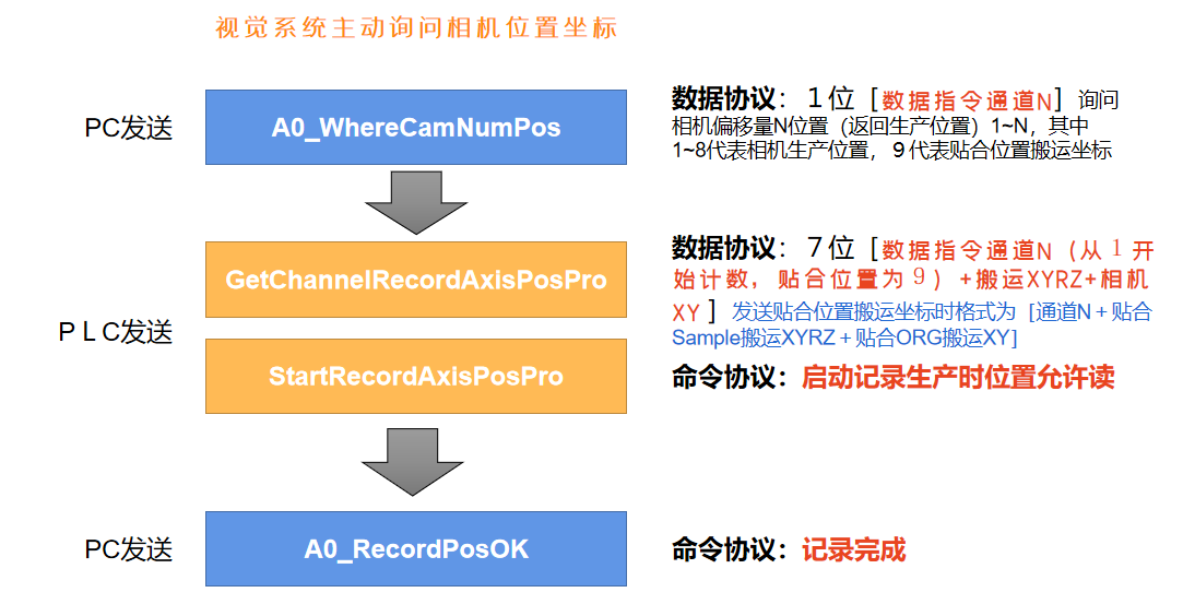 备注:29号要位置指令如果改为命令协议就代表要所有的位置,如果改为数据协议就代表要固定通道的位置。0~7分别代表相机位置;8代表贴附位置(控轴和通讯相同)
