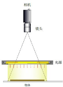 平面条纹光源使用平面条纹式照明,通过反射的光线相互干涉而形成明暗相间的干涉直条纹,当检测物体表面有凹凸不平时,由于光程变化使得部分直条纹产生形变,以此来检测元件表面的凹凸点及细小缺陷问题。