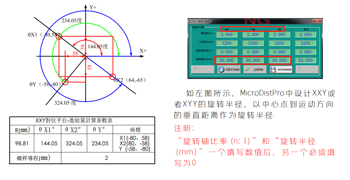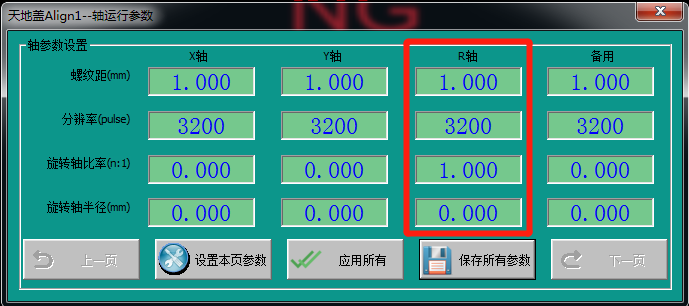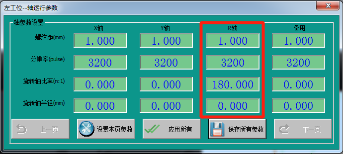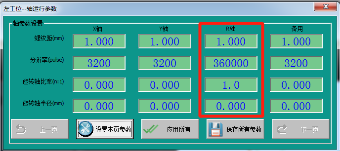 注明:“旋转轴比率(n:1)”和“旋转半径(mm)”一个填写数值后,另一个必须填写为0