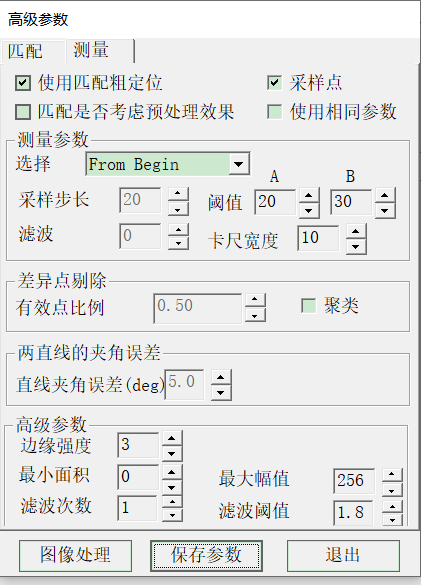 卡尺工具的宽度,例如卡尺宽度是10代表会在是个像素点的宽度范围内取到一个有效点。默认值为10