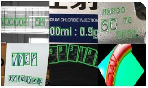 ● 字符识别:利用深度学习技术,自主学习各类场景中不同类型的字符,包含数字、字母、文 字等其他特 殊字符,实现复杂环境下字符的高精度识别,识别速度快、准确率高。通过3D相机对于低对比度场景下的凹凸字符识别,可实现轮胎表面文字,反光金 属表面铭文等凸起符号检测。
