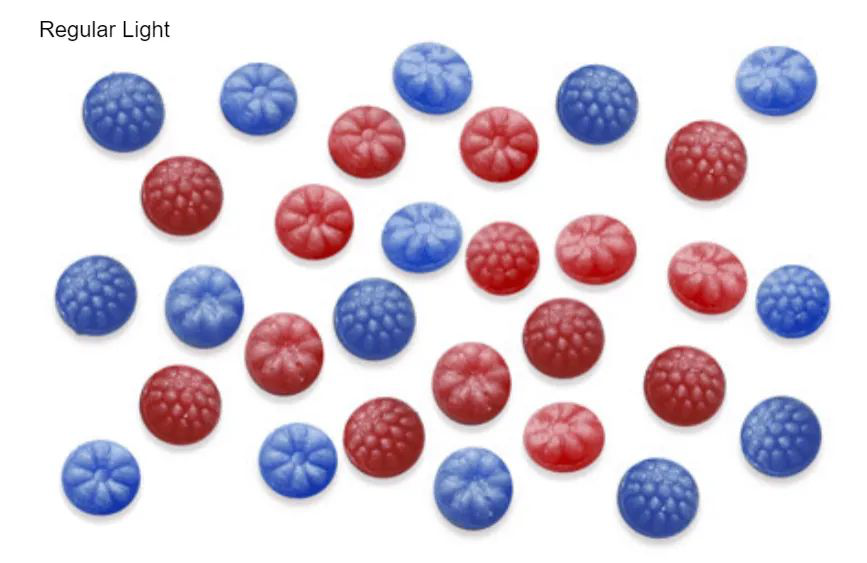假设检验任务需要将红色糖果从蓝色糖果中分开,那么可使用红光。红色糖果完全反射红光,因此显得很亮,而蓝色糖果主要吸收光,显得很暗。