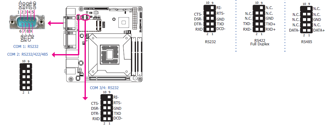 (1)以上3种机型是COM1支持RS-232/422/485,COM2-6只支持RS-232,7010/7012 RS-485在如下图1所示位置,7030 RS-485在如下图2所示位置