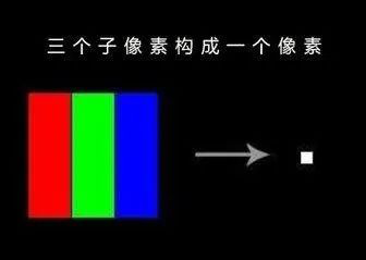可是具体的某个像素点是如何显示出不同颜色的呢?当然还是RGB三原色的混合。一个像素包含红、绿、蓝三个微小色块,这个色块可以叫做子像素。