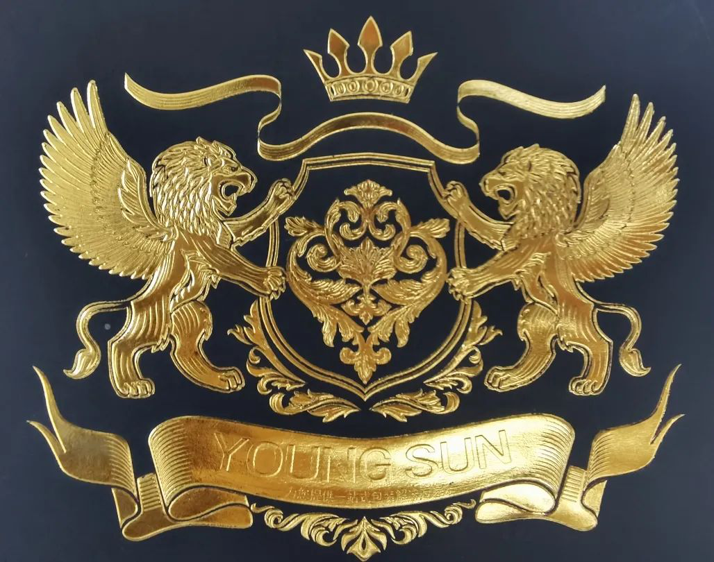 热烫印是借助一定的压力和温度,运用装在烫金机上的模版,使印刷品和烫印版在短时间内合压,将电化铝或彩色颜料箔按烫印模版的图文要求转印到被烫材料表面的加工工艺。