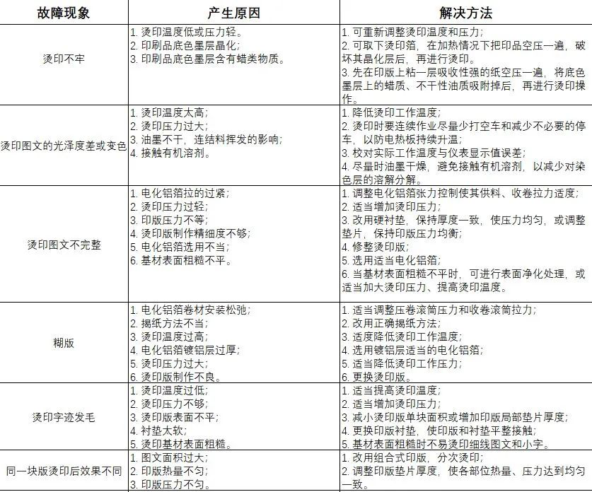 在烫印过程中往往会出现许多质量问题,实施有效的烫印质量控制必不可少,主要为印刷过程控制(承印物控制、油墨控制、印刷参数控制)和烫印过程控制(物料控制、烫印设备控制、参数设置控制)。