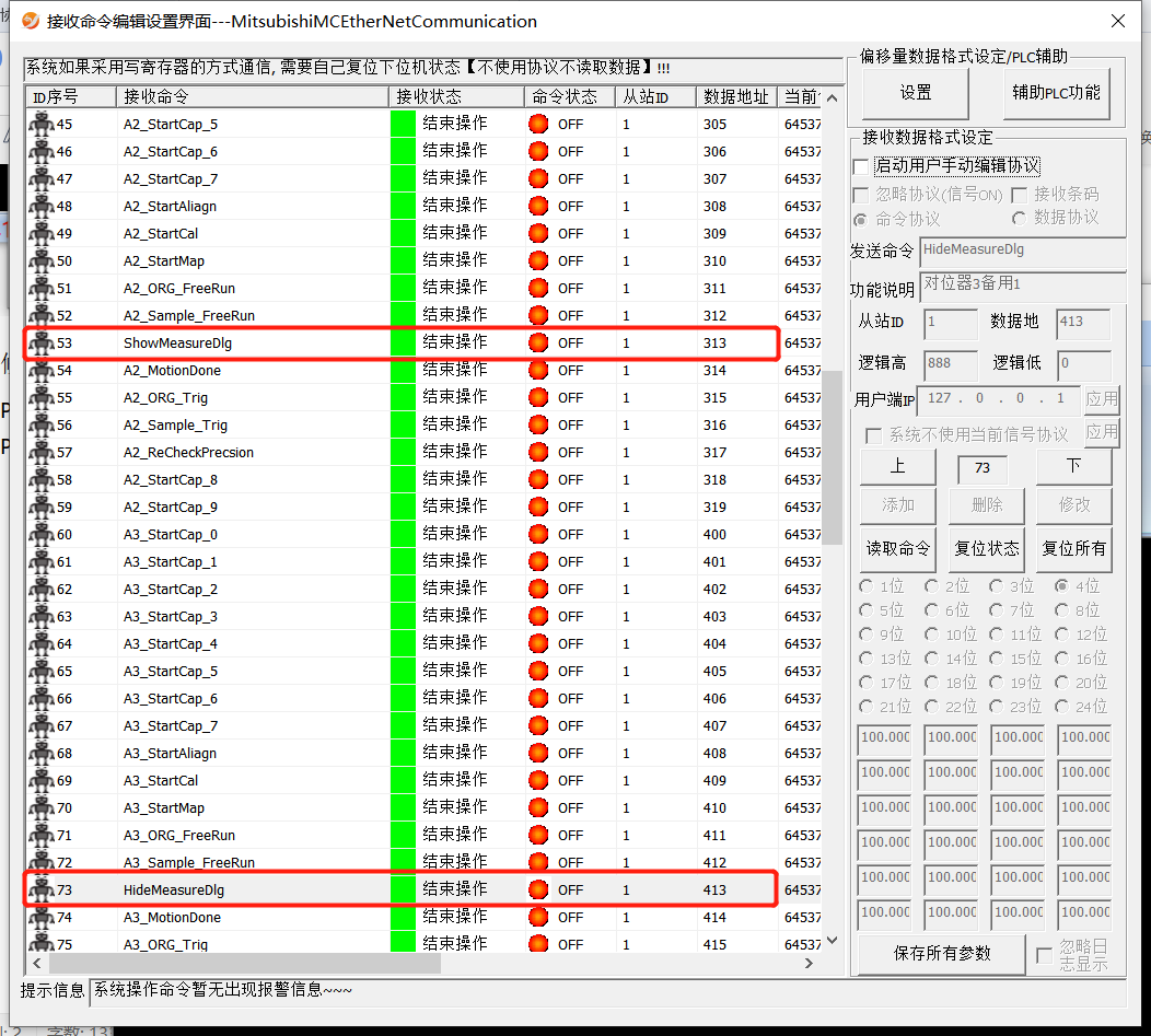 同理修改接收信号里序号为53和73的协议。53代表显示测量界面,73代表关闭测量界面。