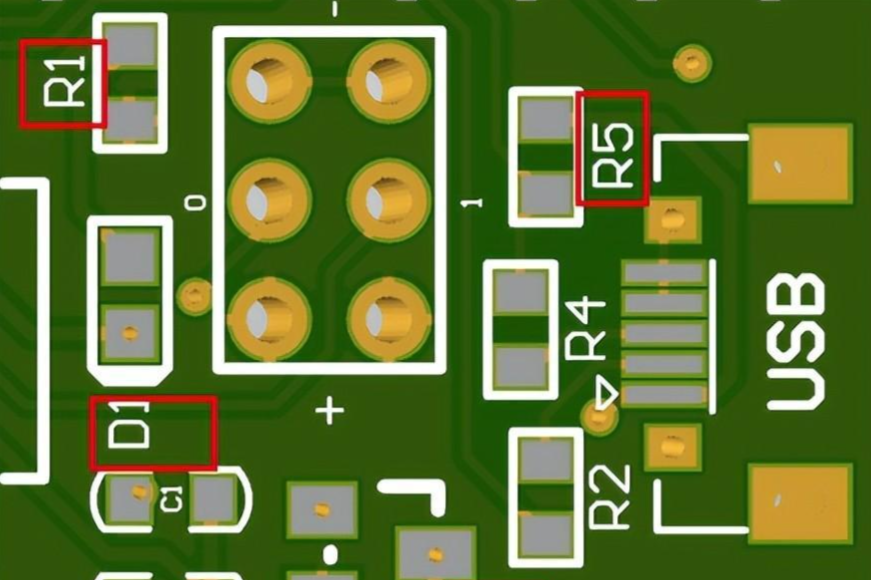 PCB 丝印是在 PCB 制造过程中完成的,但用于 PCB 组工艺步骤。下图为成品图上的丝印案例。