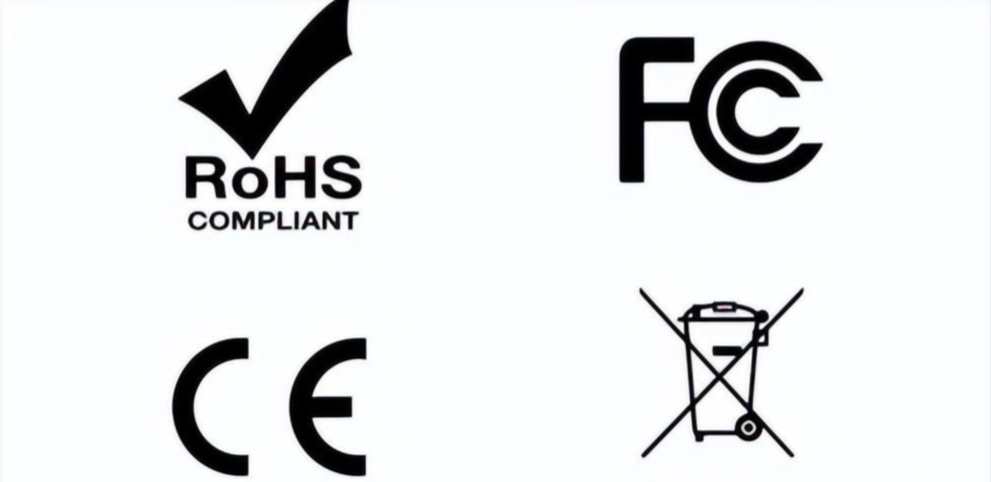 RoHS、FCC、CE 和电子废物处理标志通常出现在已通过相关检查的消费品和商业产品上。