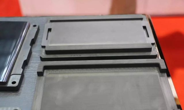 第二步.石墨材料在切料房切好了之后进入CNC电脑锣加工中心迚行成型雕刻,碳素 CNC 电脑锣需加工速度快,精度高。此种模具热压出来的产品精度,是可以达到新品发布会上公布的0.025mm的热弯加工精度的。