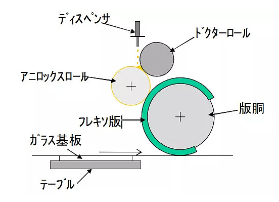 PI(Polyimide)是一种透明的有机高分子材料,有主链和侧链,经涂布烘烤后,会牢固地附着在CF 和TFT 基板表面。PI 的涂布采用一种凸版印刷的技术。其工作原理见以下示意图: