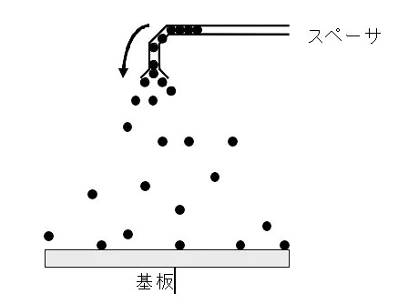 盒厚控制是靠选择设定的球形衬垫料的直径来实现的。衬垫料需要在贴合前均匀地喷洒到玻璃基板地表面,这是通过一种让衬垫料带电后干喷的设备完成的。其示意图如下: