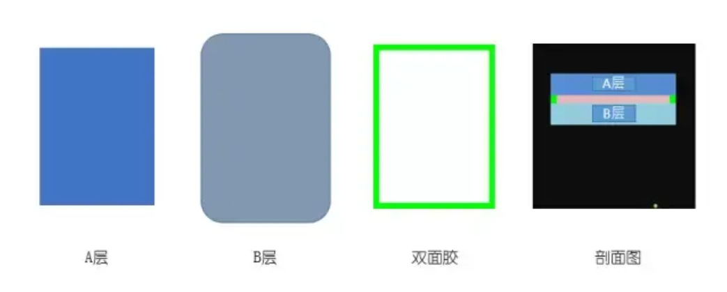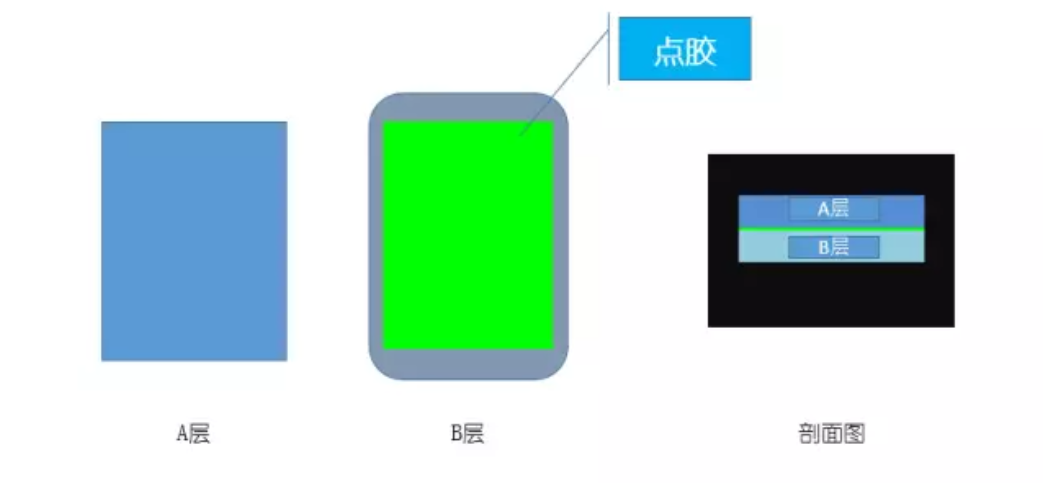如图,利用框贴的方式,两层之间是有空隙的,所以我们的屏幕会遇到进灰现象。为了将解决这种现象,就产生了一种更高级的贴合方式,叫做全贴合。