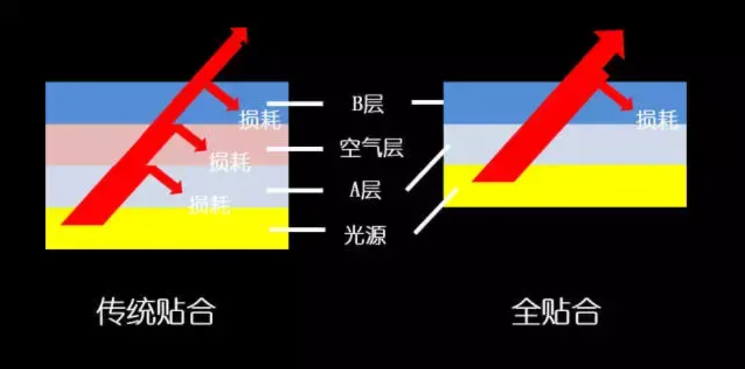 由于少了空气层,减少光线的损耗,在同等亮度需求下会更加省电;同样,全贴合会减少反光量,入射光线反光变少,屏幕会更加清晰。
