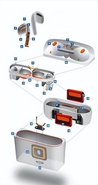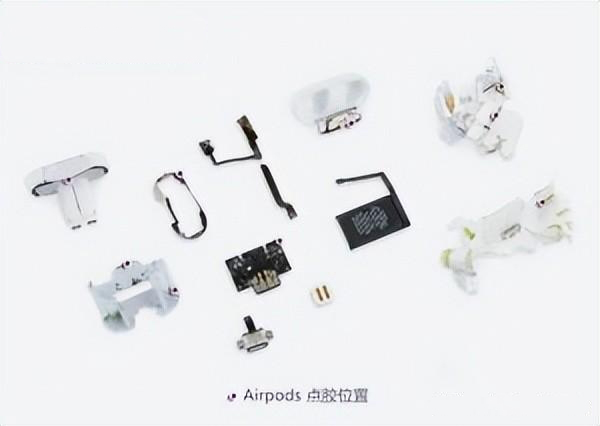 TWS比较典型的案例是苹果Airpods和二代AirpodsPro,如下图,所示位置均采用了胶水粘合,从而达到或抗震,或防摔,或防水的不同要求。