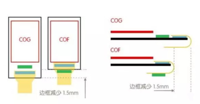 在进入“全面屏”时代之前,"COG"(Chip On Glass)是智能手机屏幕普遍采用的一种封装技术。COG就是IC芯片被直接绑定(bonding)在LCD液晶屏幕的玻璃表面,这种封装技术可以大大减小整个 LCD 模块的体积,良品率高、成本低并且易于大批量生产。