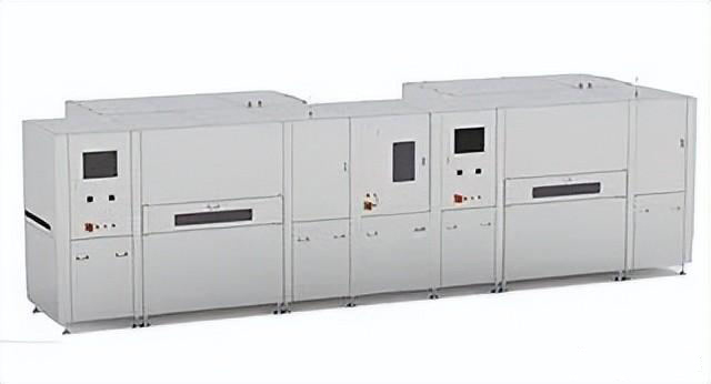 通过IR光源,将需要保留的油墨进行固化。下图是全自动的连线LED曝光机。