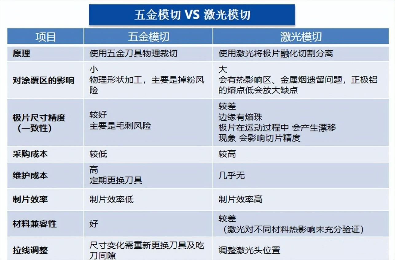 卷绕和叠片的模切方式、产品物料、极耳间距、冲切定位方式等存在差异性。