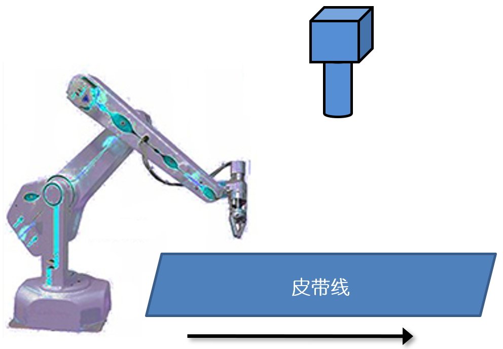 系统中可以使用1颗相机,一般相机固定,拍摄运动中皮带线上产品,引导机器人跟踪抓取