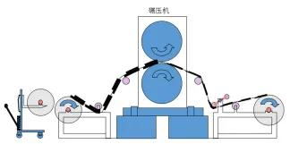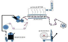 涂布流程:放卷、接片、拉片、张力控制、自动纠偏、涂覆、干燥、张力控制、自动纠偏、收卷、转运