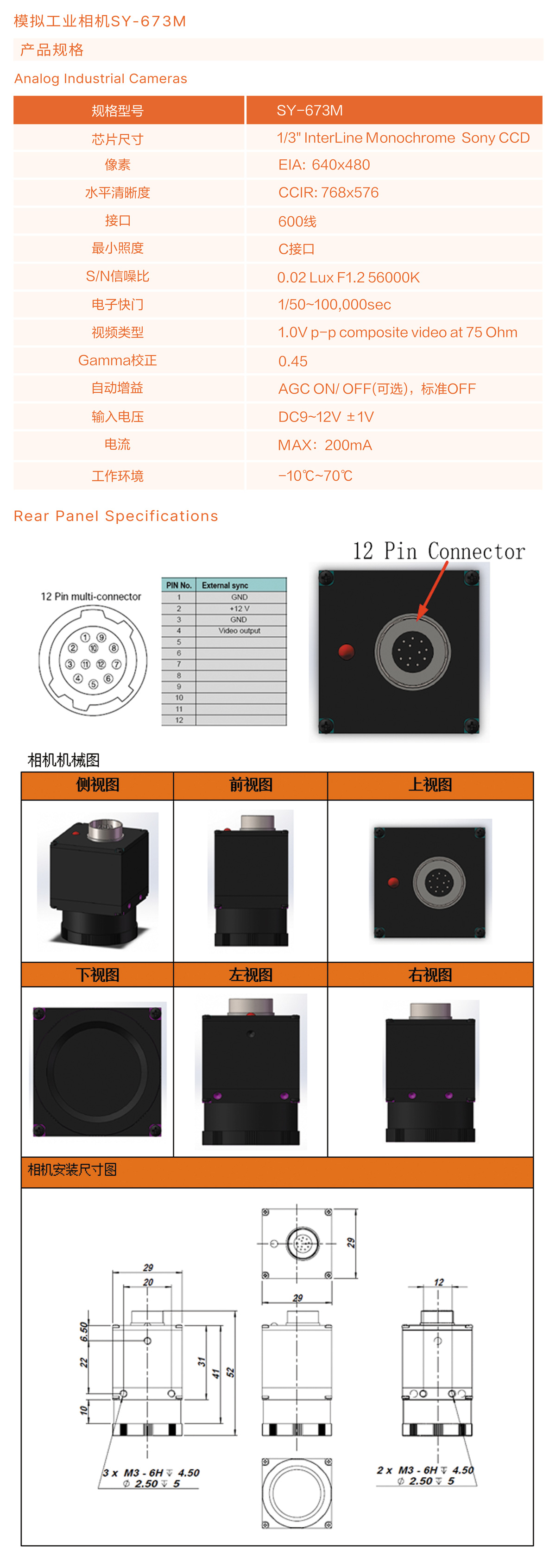 模拟工业相机SY-673M尺寸图 时间:2019-12-31 23:03:42