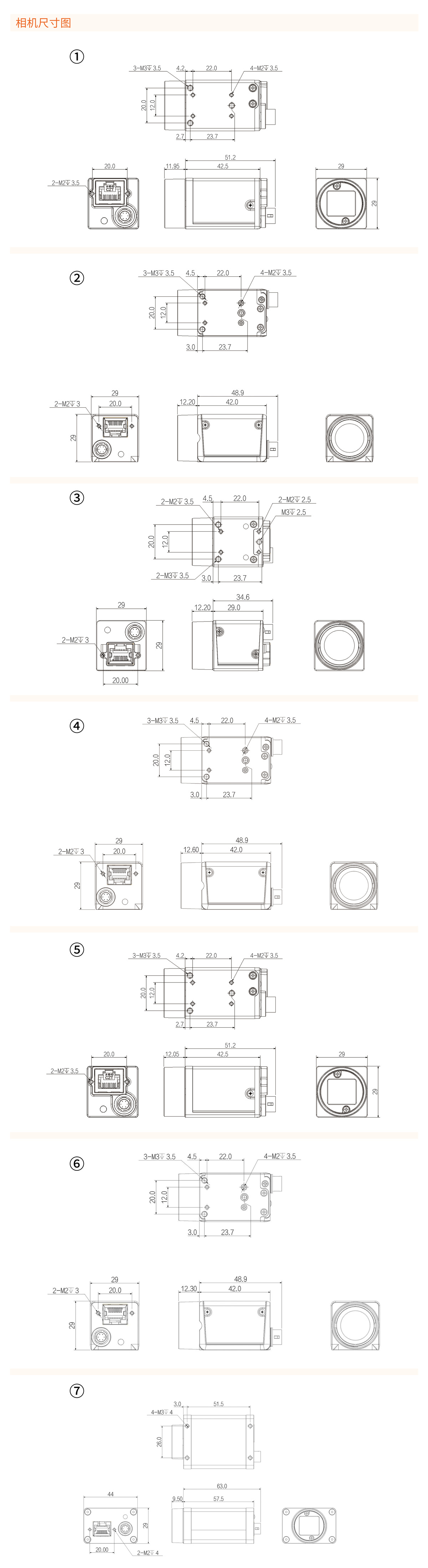 CD系列 GigE千兆网工业相机尺寸图