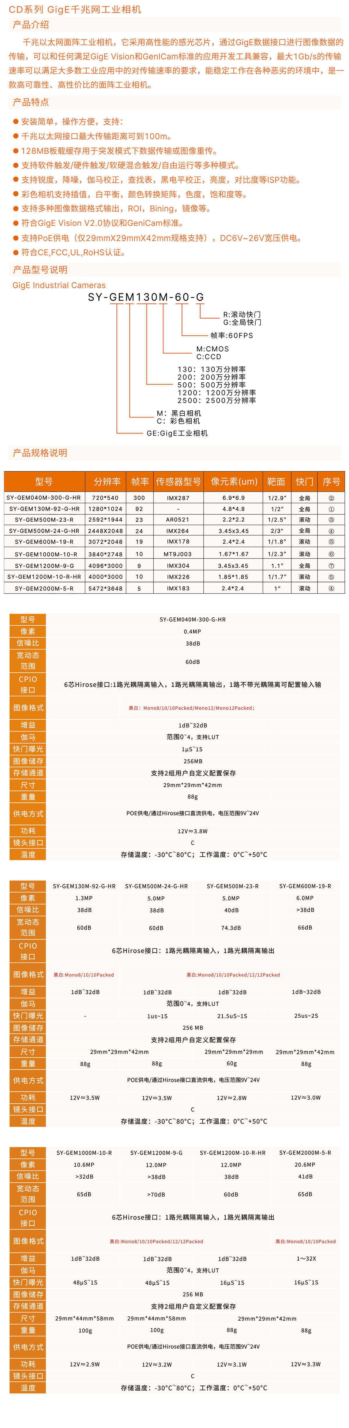 CD系列 GigE工业相机 - Datasheet