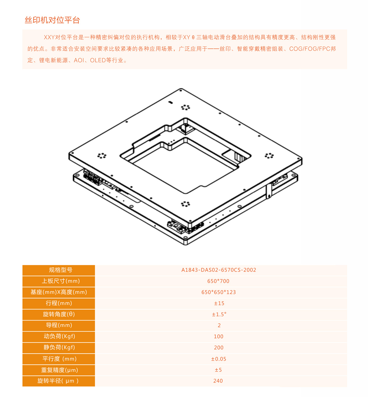 XXY对位平台是一种精密纠偏对位的执行机构,相较于XYθ三轴电动滑台叠加的结构具有精度更高、结构刚性更强的优点。非常适合安装空间要求比较紧凑的各种应用场景,广泛应用于——丝印、智能穿戴精密组装、COG/FOG/FPC邦定、锂电新能源、AOI、OLED等行业。