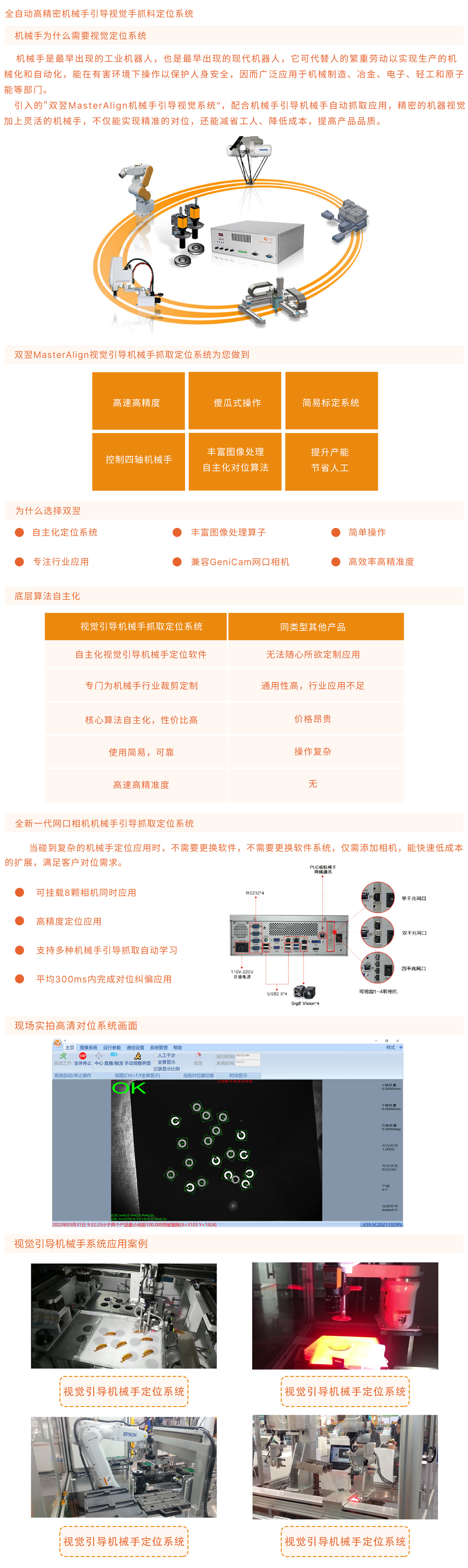 引入的“杏耀平台登录入口MasterAlign机械手引导视觉系统",配合机械手引导机械手自动抓取应用,精密的机器视觉加上灵活的机械手,不仅能实现精准的对位,还能减省工人、降低成本,提高产品品质。