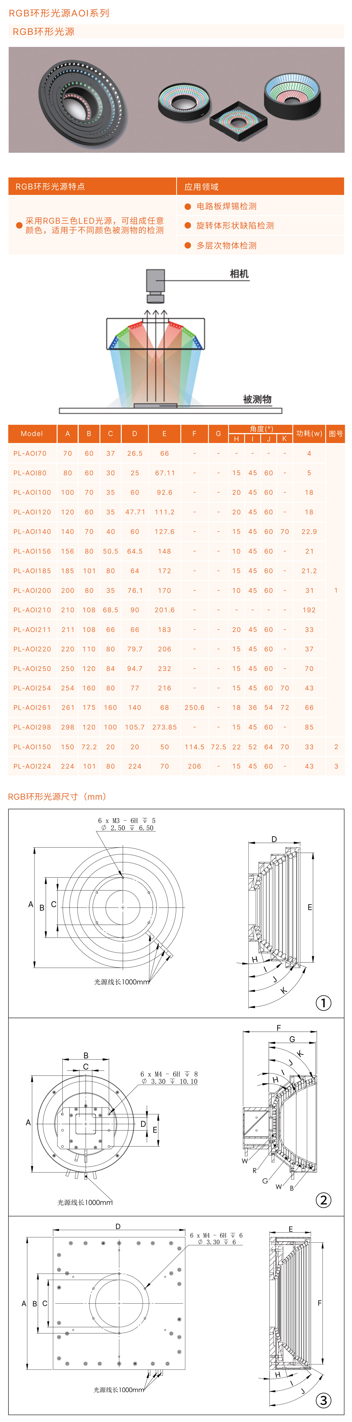 采用RGB三色LED光源,可组成任意颜色,适用于不同颜色被测物的检测