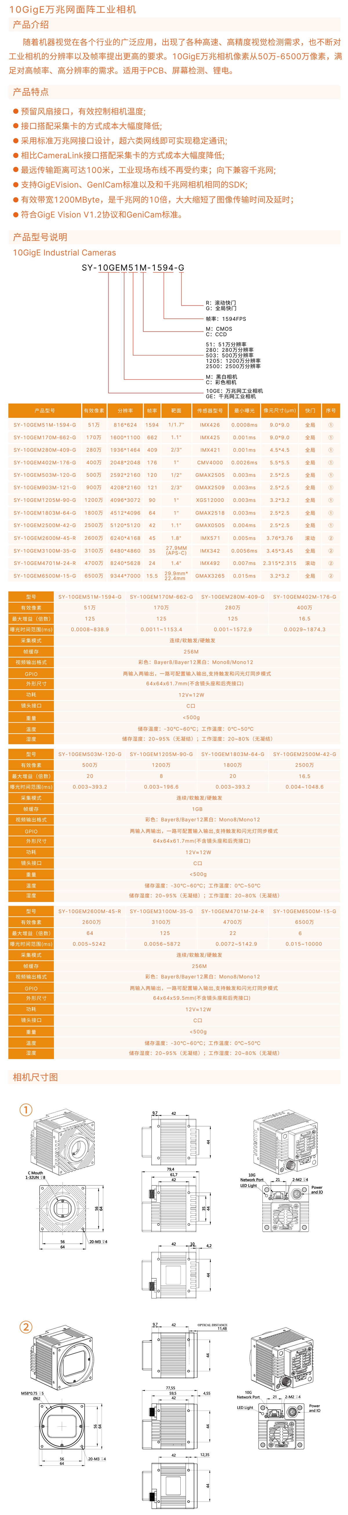 - 支持GigEVision,GenICam标准以及和千兆网相机相同的SDK,缩短客户开发周期