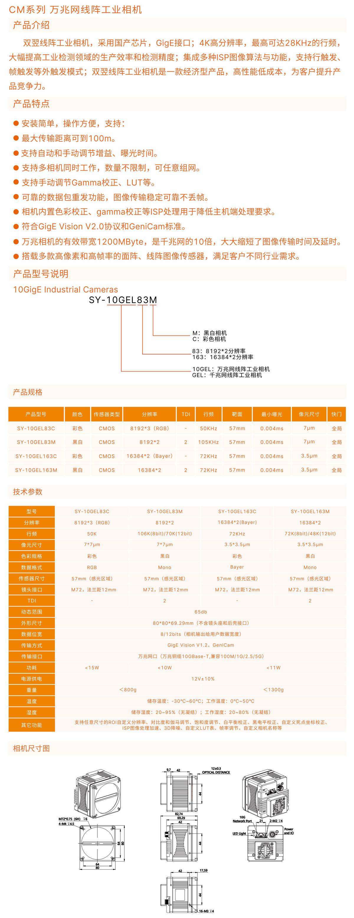 - 搭载多款高像素和高帧率的面阵、线阵图像传感器,满足客户不同行业需求;