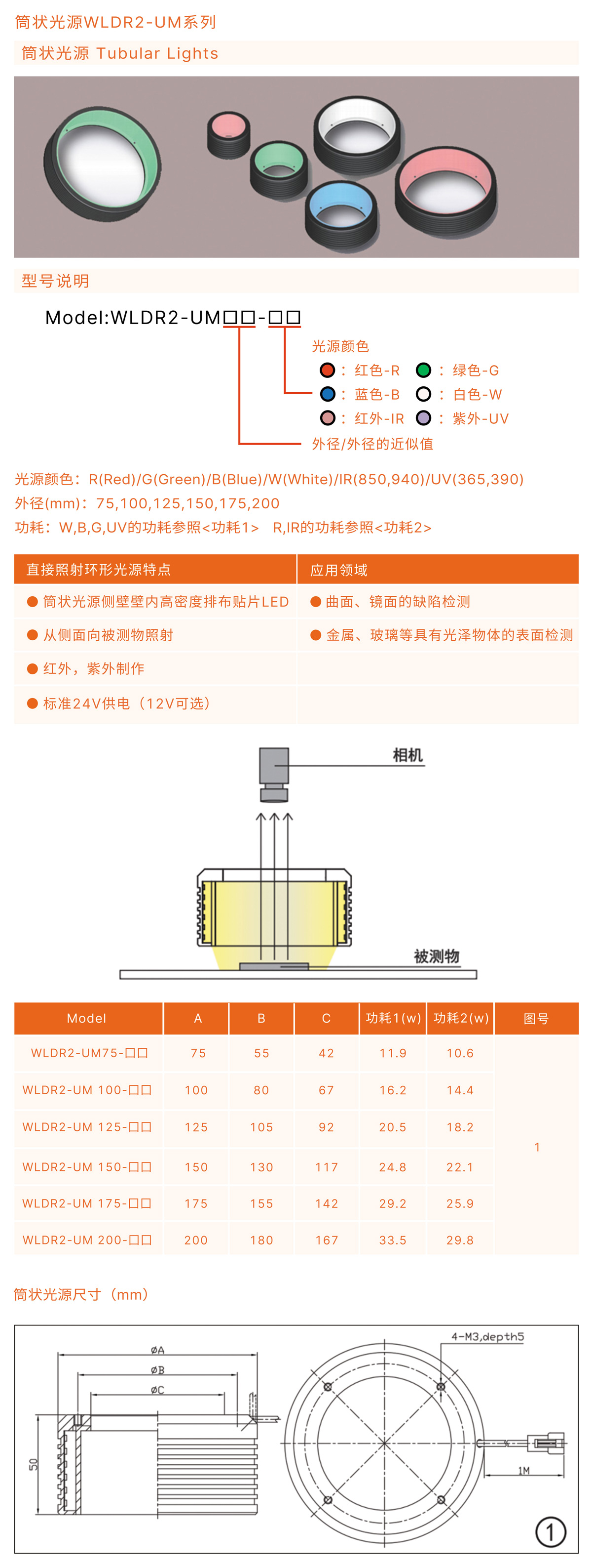 筒状光源侧壁壁内高密度排布贴片LED,从侧面向被测物照射