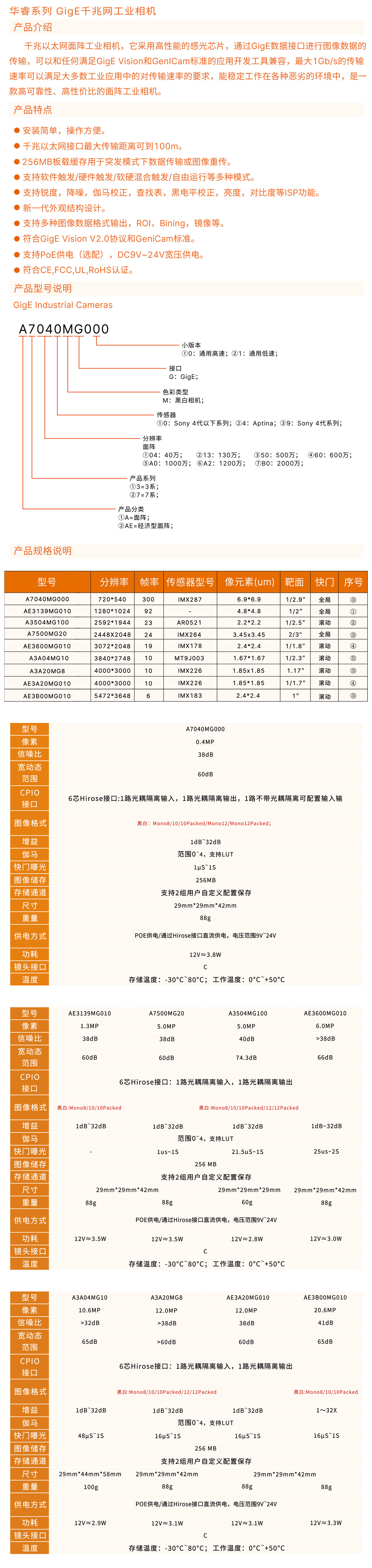 华睿系列 GigE千兆网工业相机