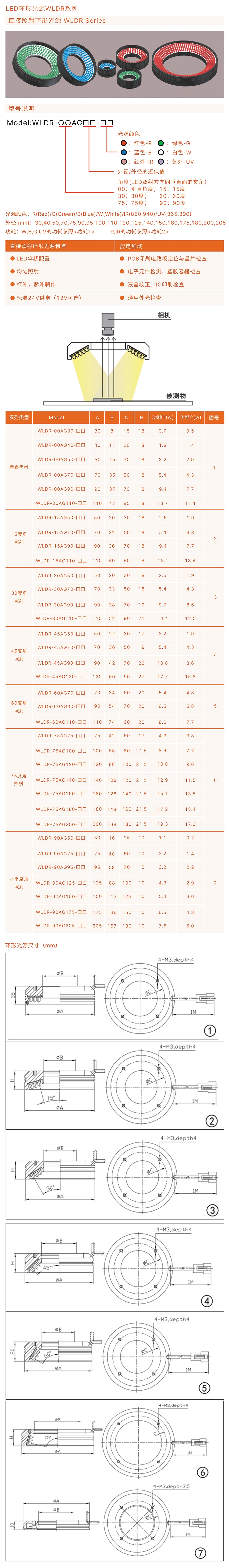 LED伞状配置,均匀照射,红外,紫外制作,标准24V供电(12V可选)