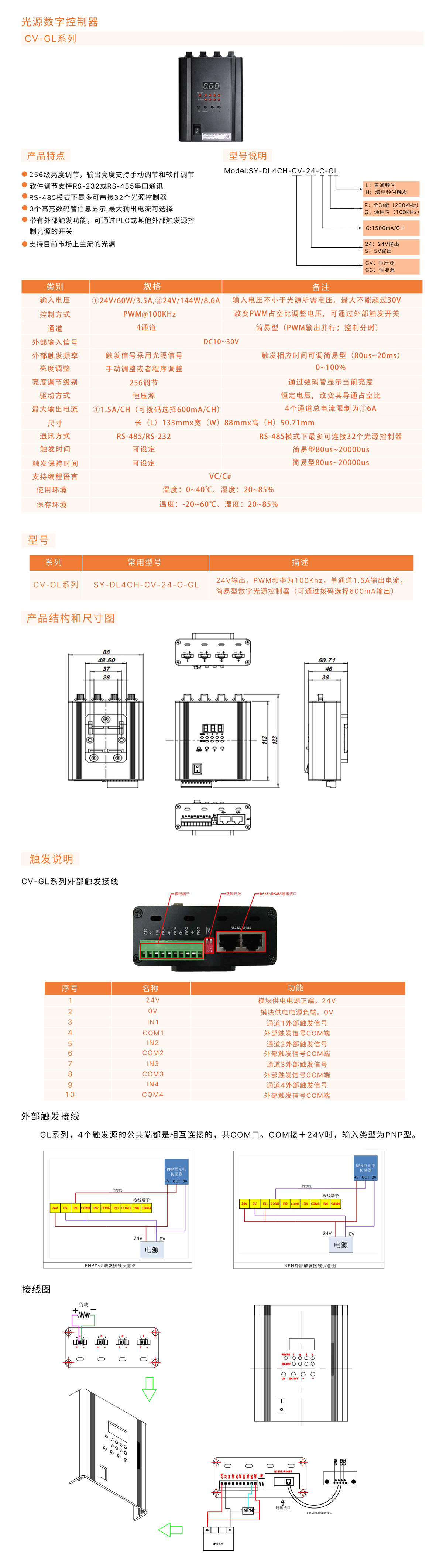 ●带有外部触发功能,可通过PLC或其他外部触发源控制光源的开关
