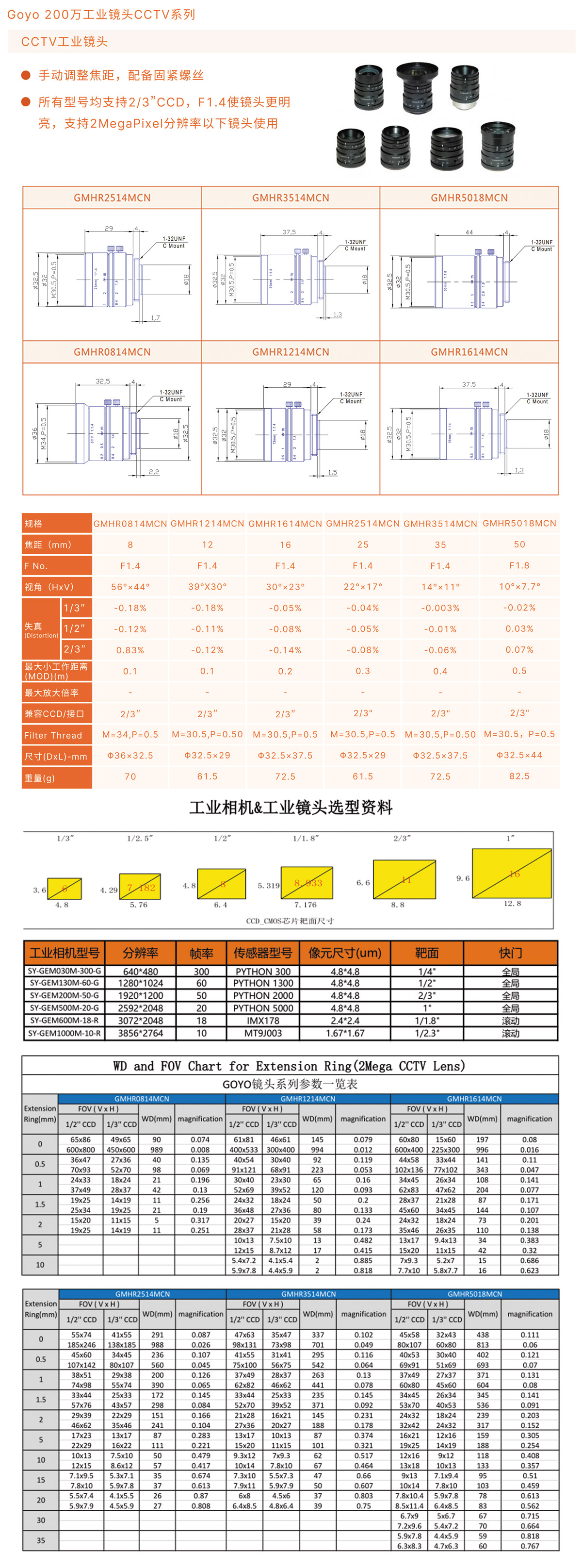 Goyo 200万工业镜头CCTV系列