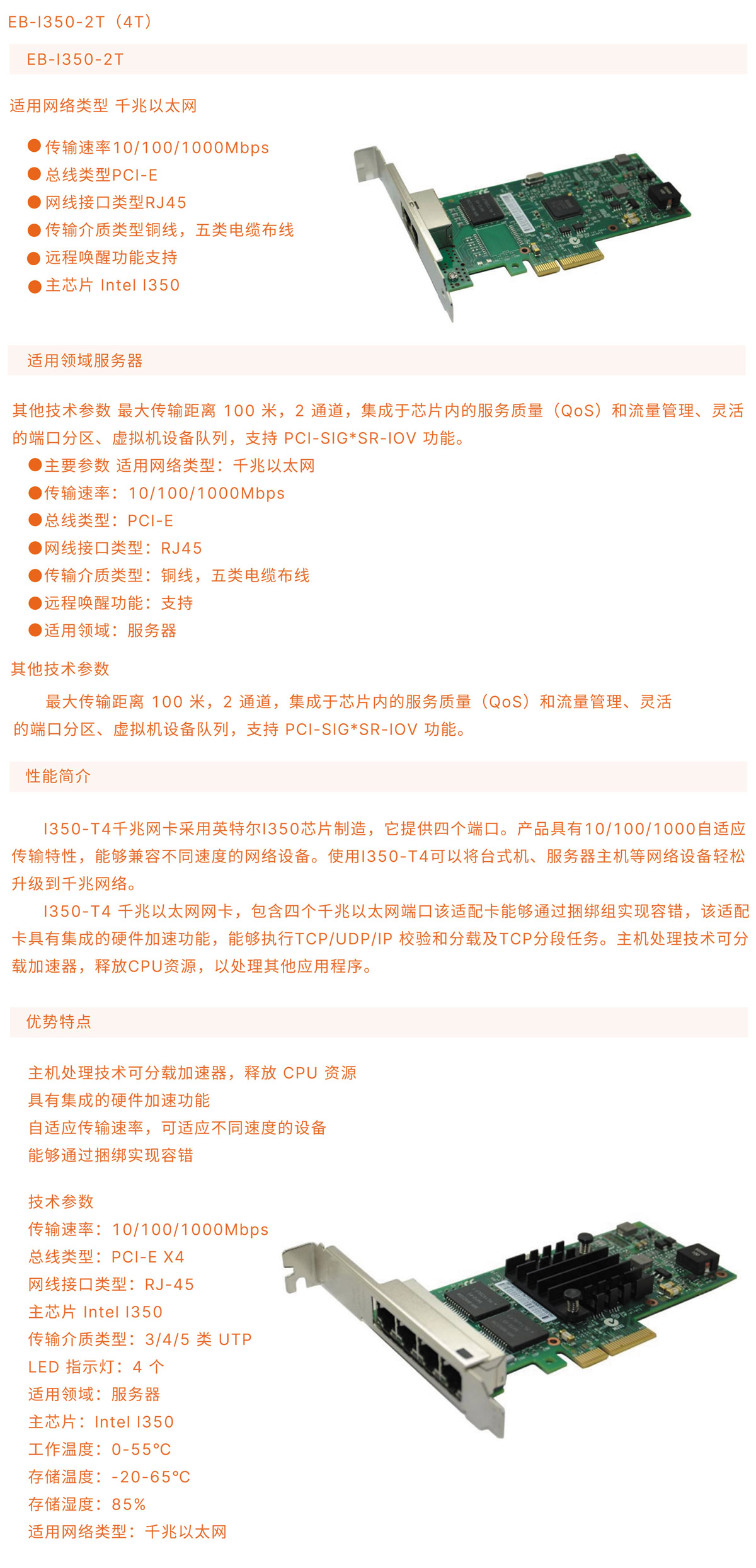 图像采集卡-EB-I350-2T(4T)适用网络类型是千兆以太网,性能简介是I350-4T千兆网卡采用英特尔I350芯片制造,它提供四个端口,可以将台式机、服务器主机等网络设备轻松升级道千兆网络。