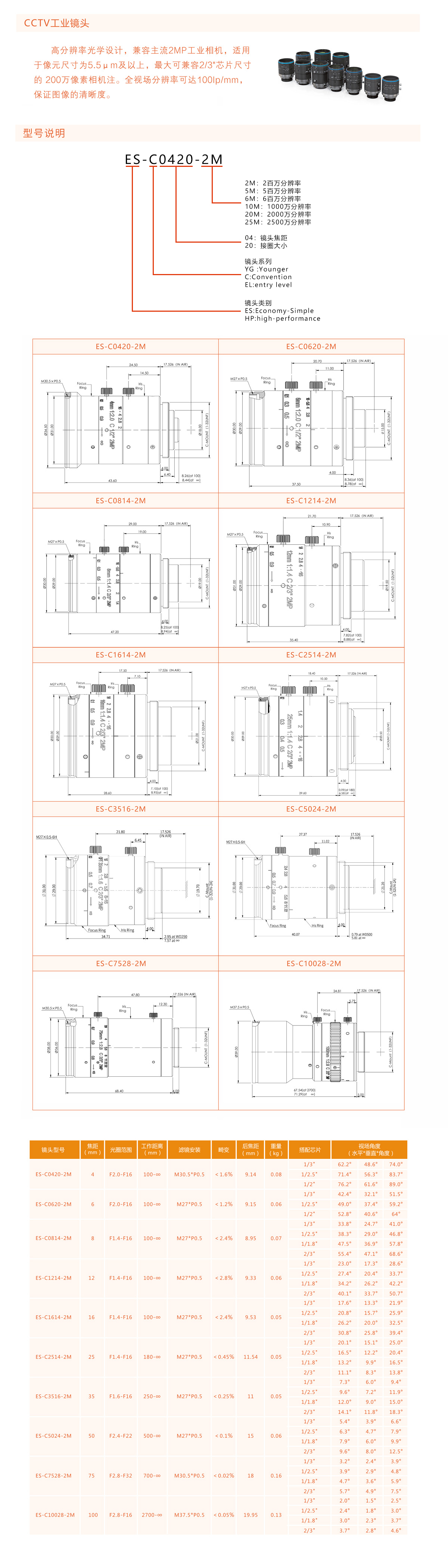 为高分辨率光学设计,兼容主流2MP工业相机,适用于像元尺寸为5.5um及以上,最大可兼容2/3“芯片尺寸的200万像素相机。全视场分辨率可达100lp/mm,保证图像的清晰度。