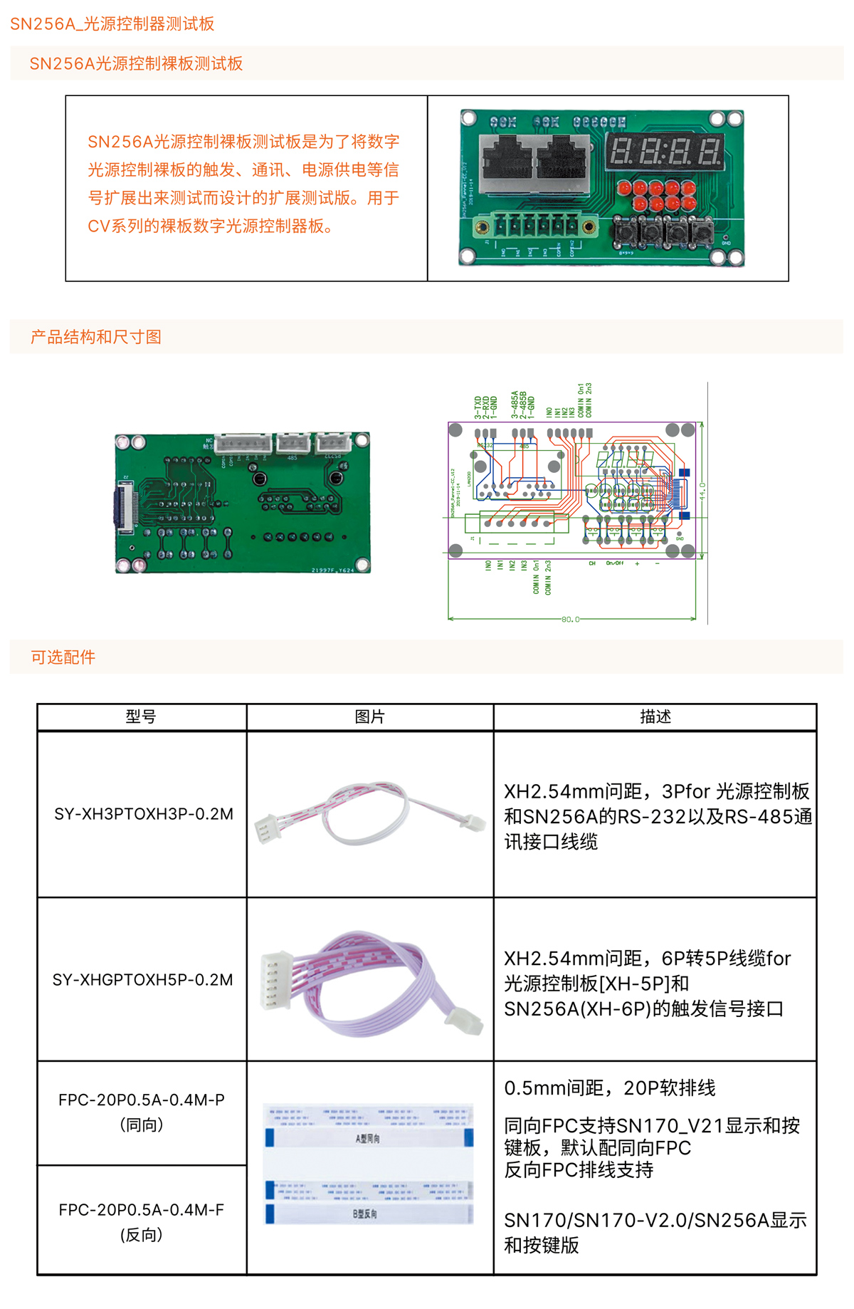 SN256A光源控制裸板测试板是为了将数字光源控制裸板的触发、通讯、电源供电等信号扩展出来测试而设计的扩展测试版。用于CV系列的裸板数字光源控制器板。